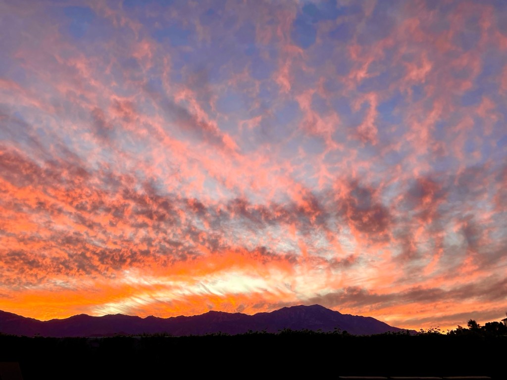 God’s creation is astonishing in its variety, depth, cleverness, beauty, vastness, and always-changing nature. My mind boggles at the complexity when contemplating just one single aspect of His creation. Watching the clouds shift and dance, billow and unfurl as the sunset colors wash over them is captivating. I think of all that beauty created with water vapors and atmospheric pressures. God’s art is just there, unsigned, for all to see and enjoy.